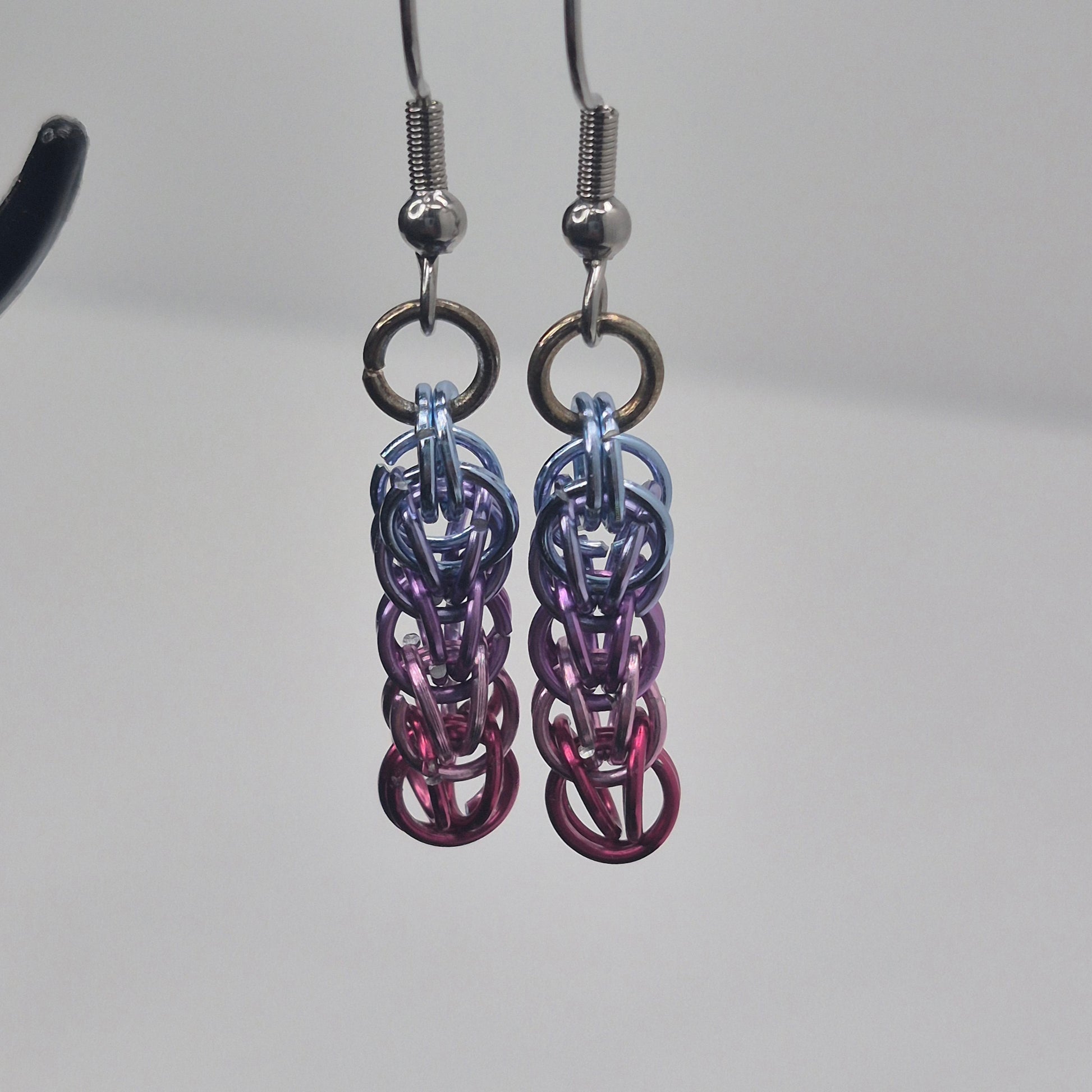 Handmade chainmail gradient earrings. Hand woven one ring at a time, this jewelry is sure to turn heads!