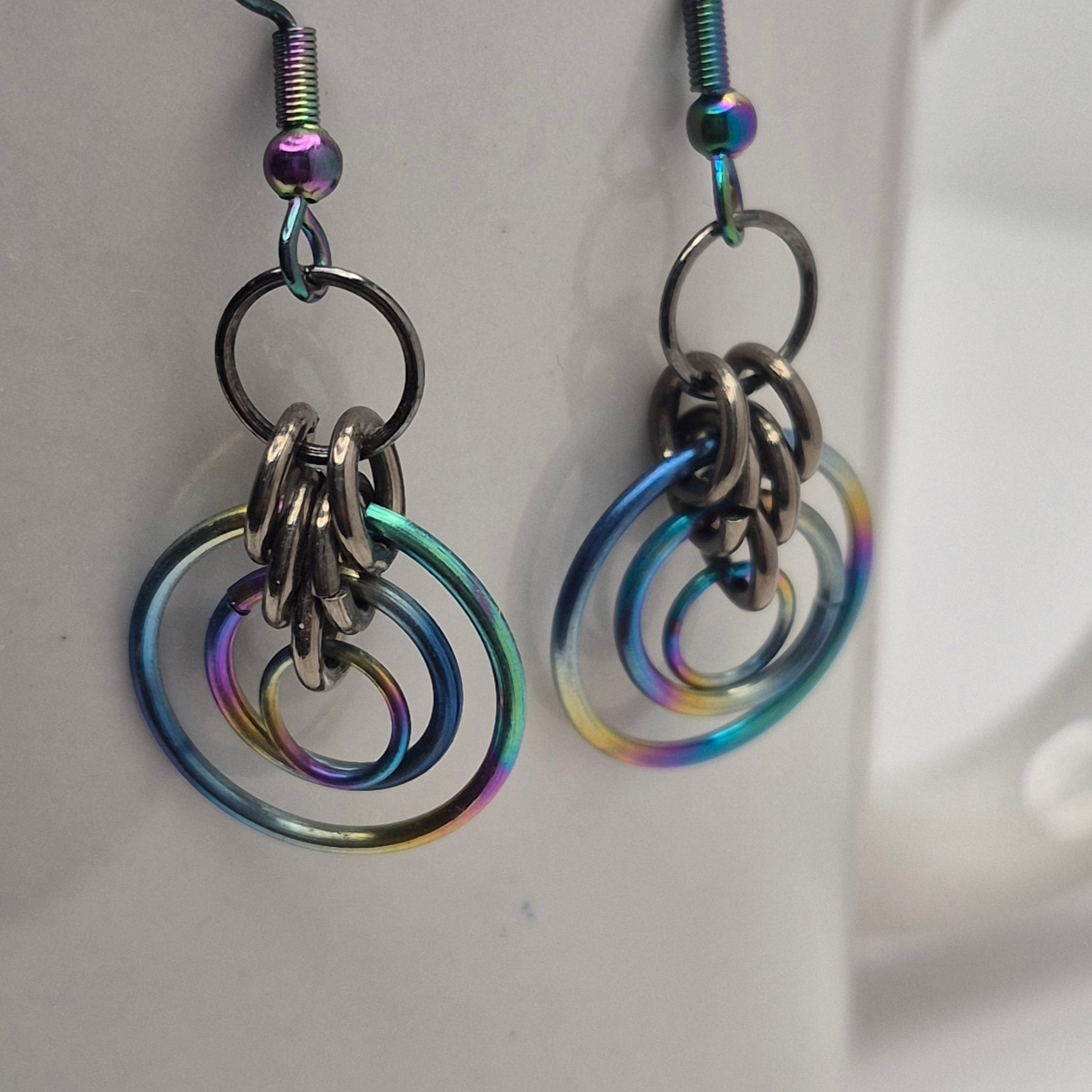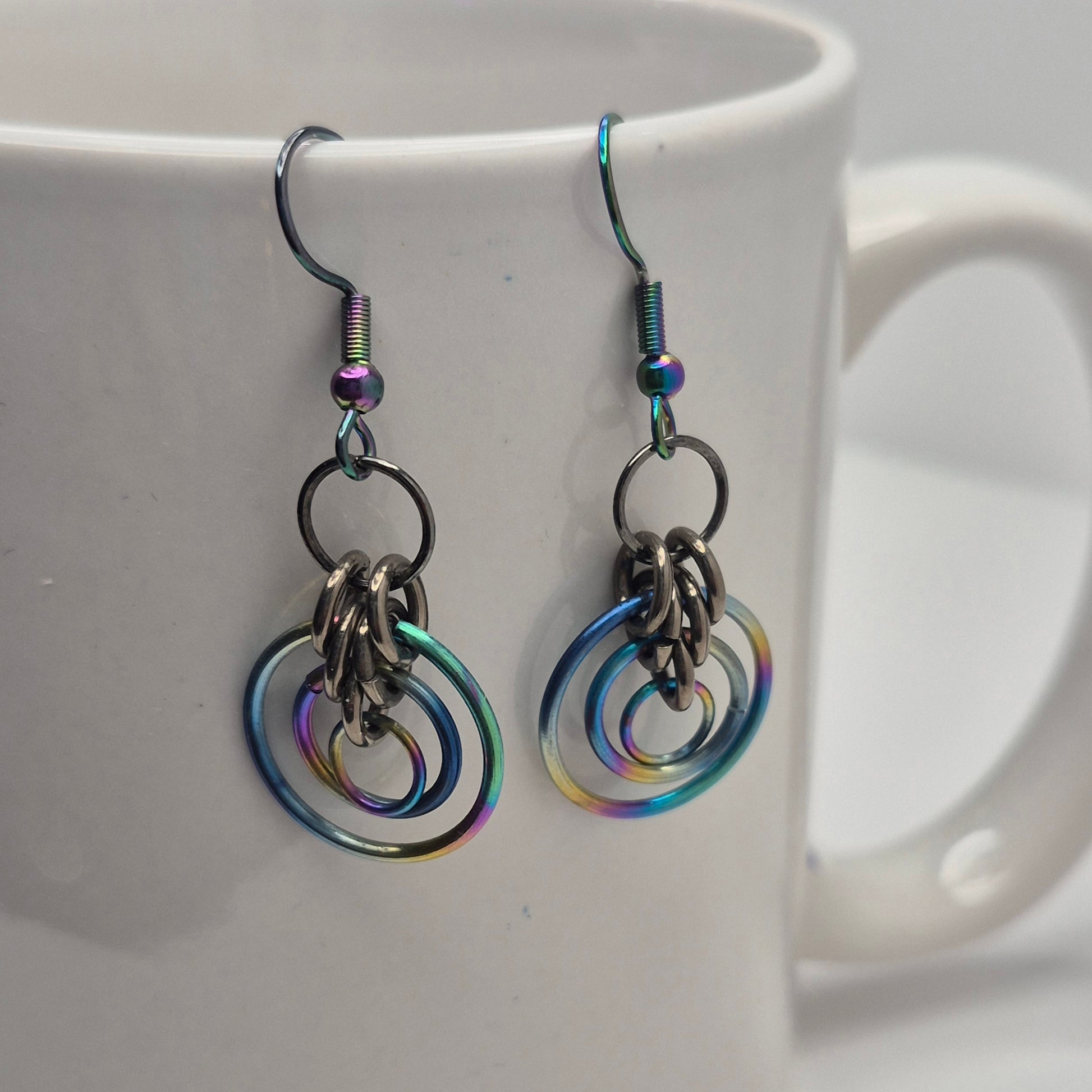 Rainbow circle earrings chainmail
