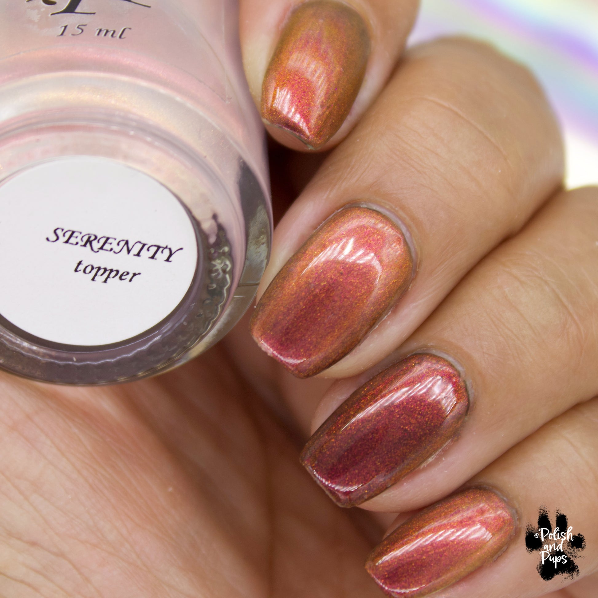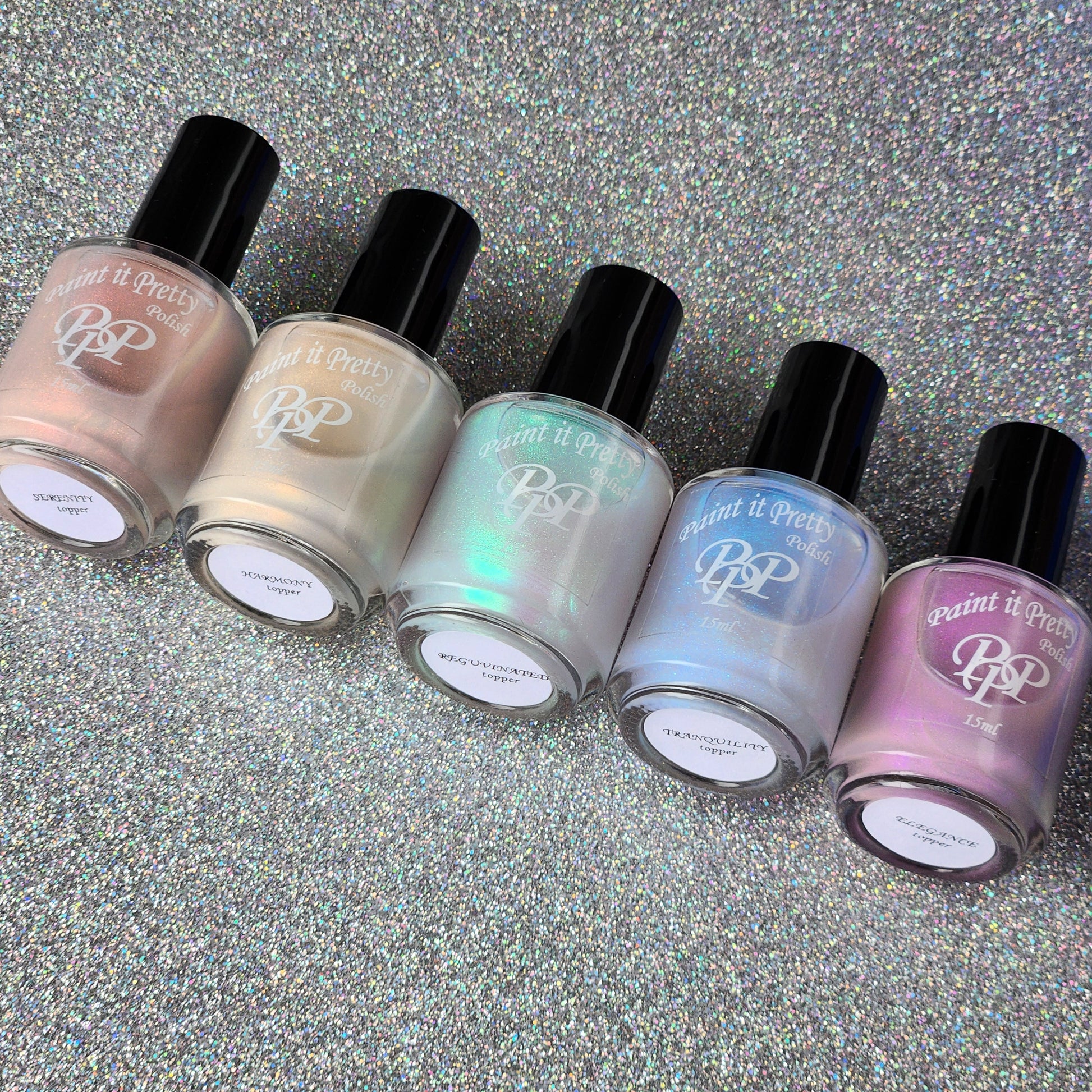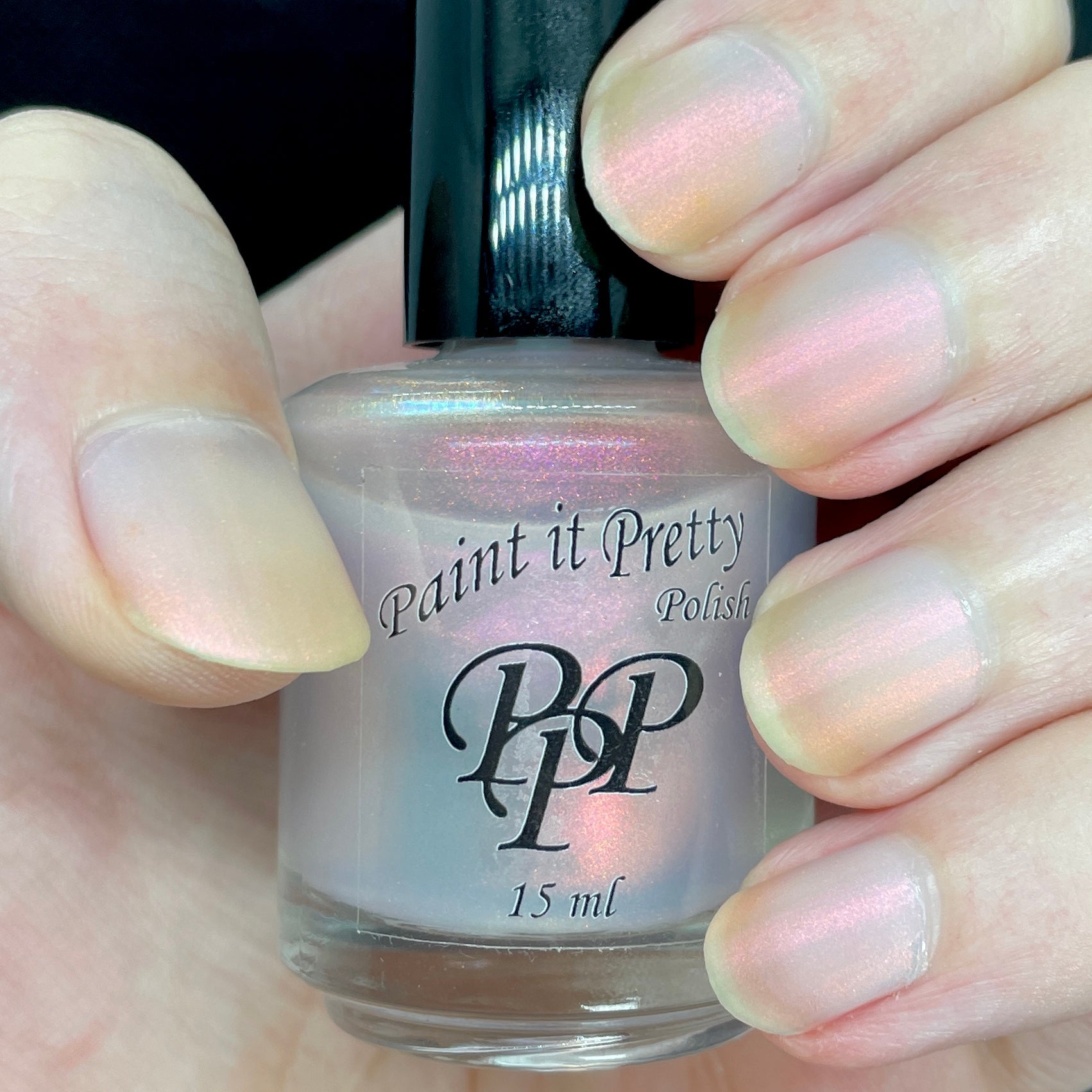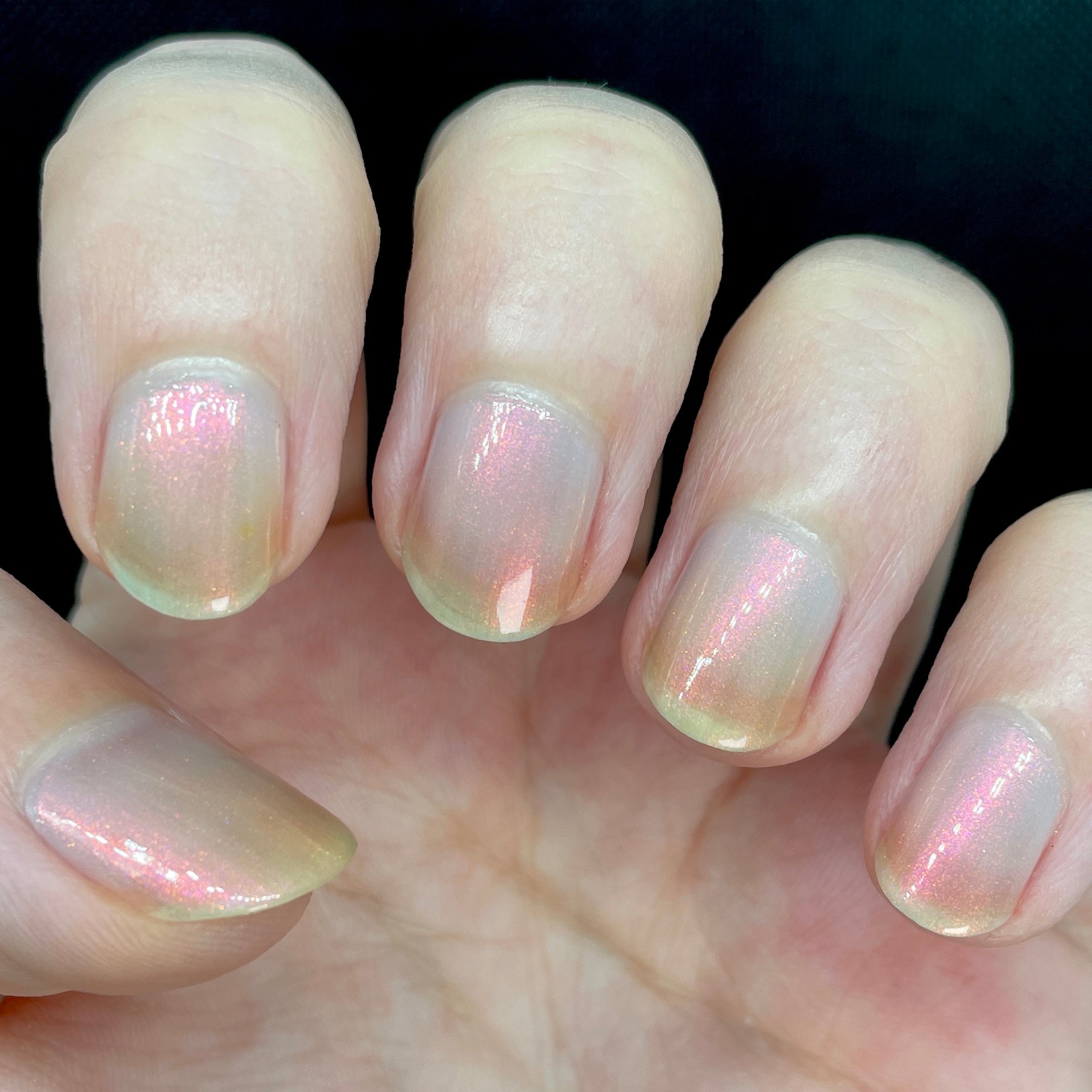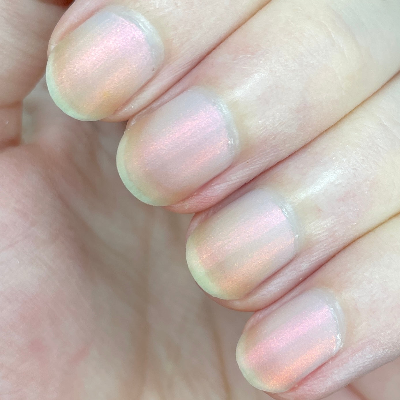 Serenity is beautiful red/orange shifting topper. Wear it on it's own for a soft milky shimmer effect or over darker shades to make the shifts pop.