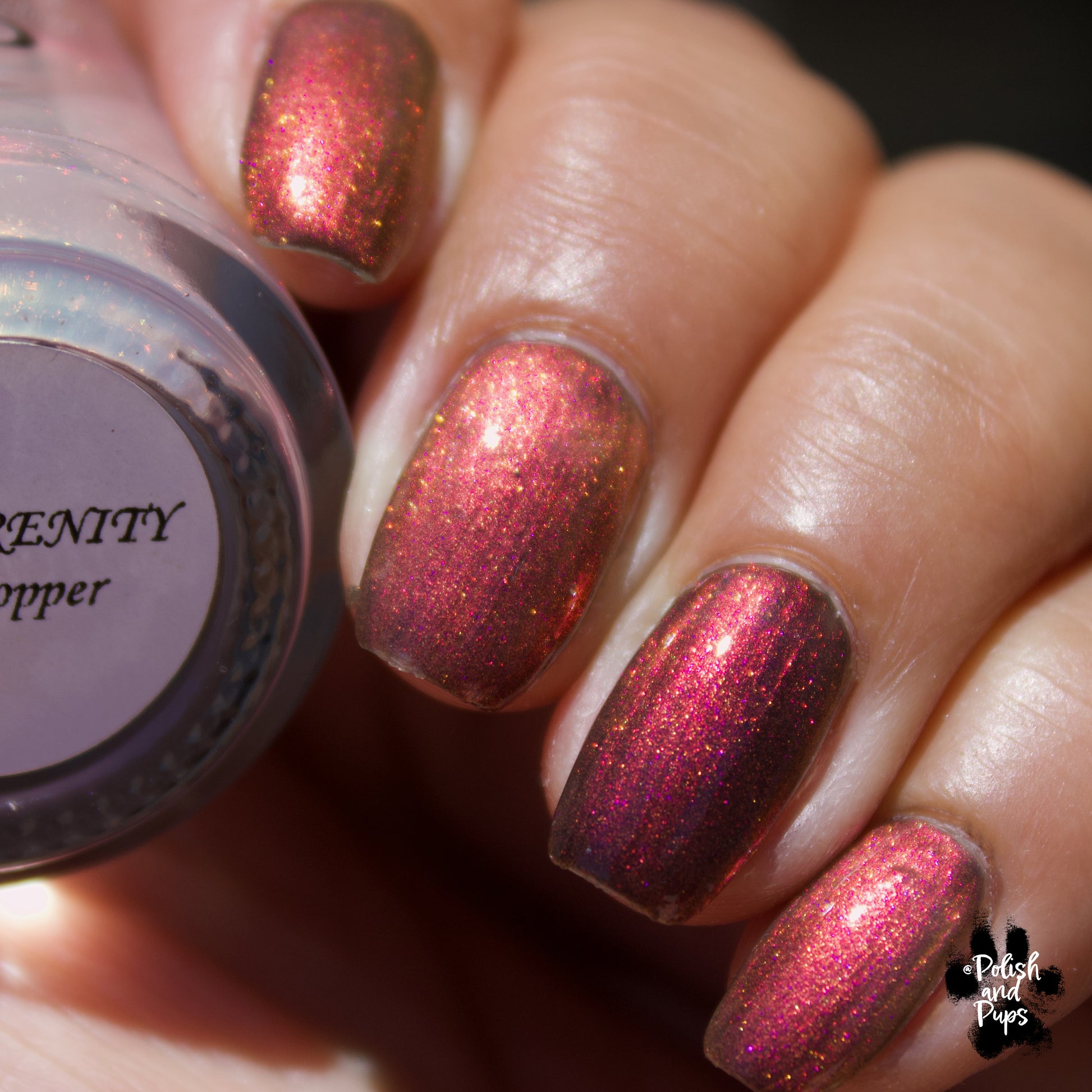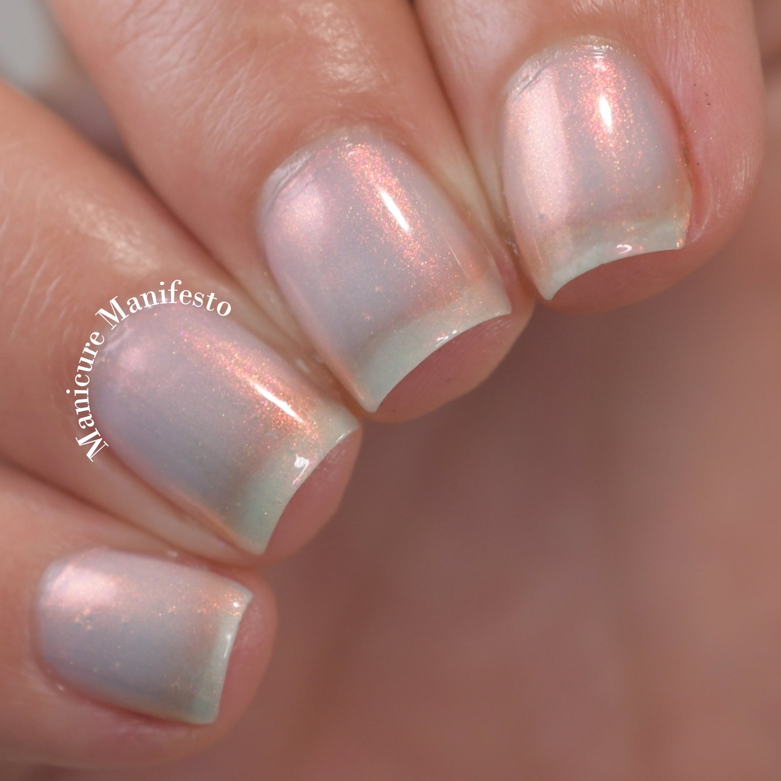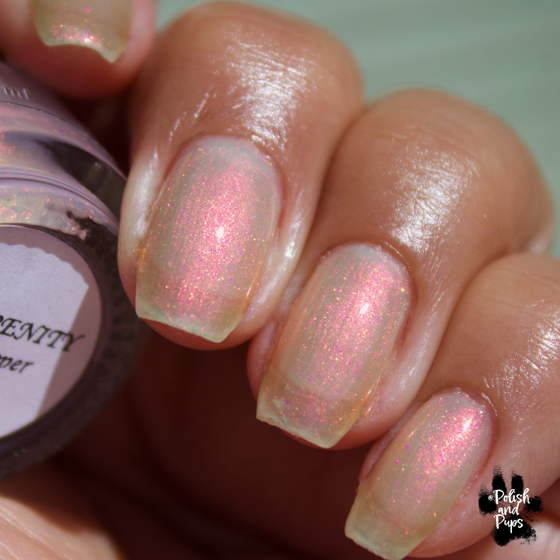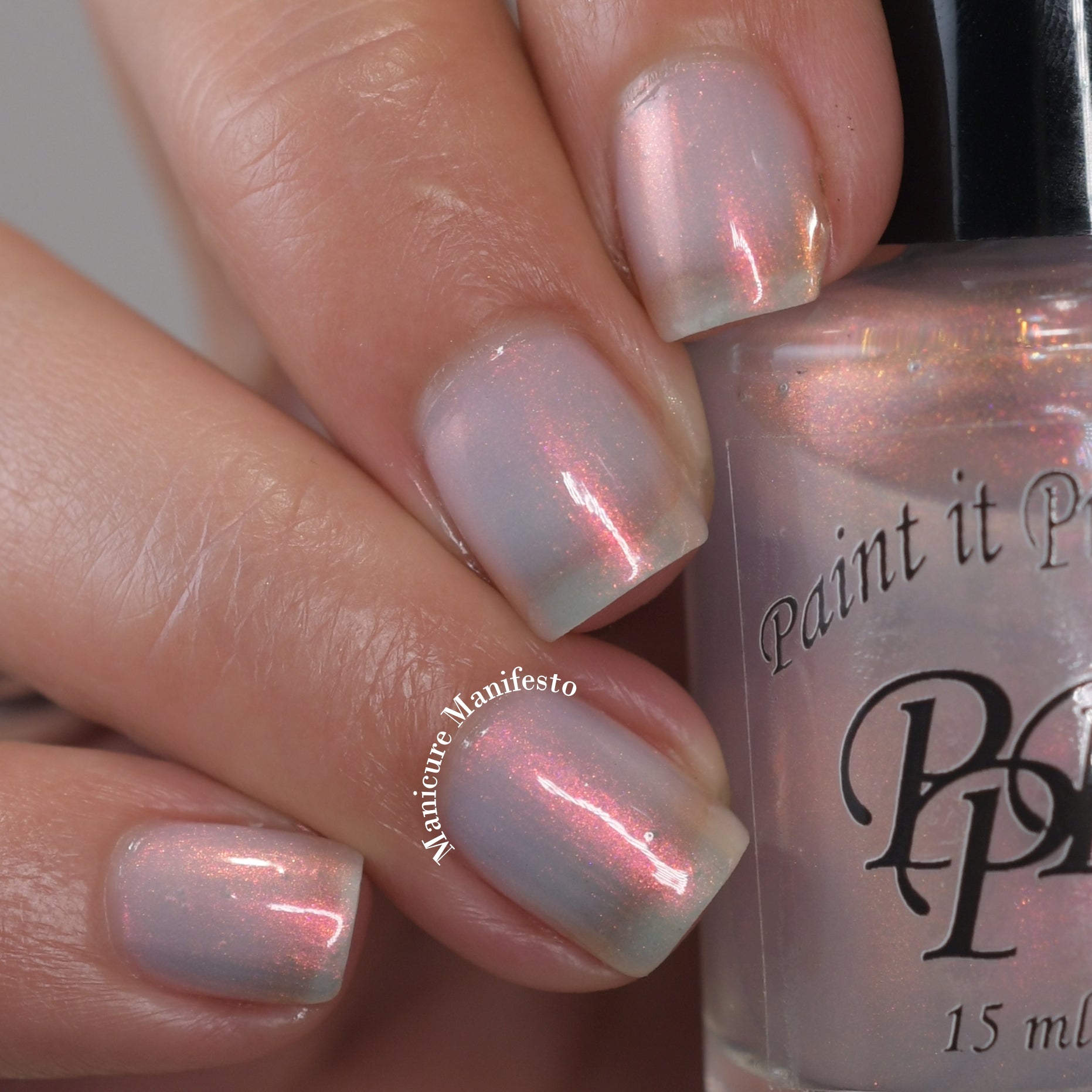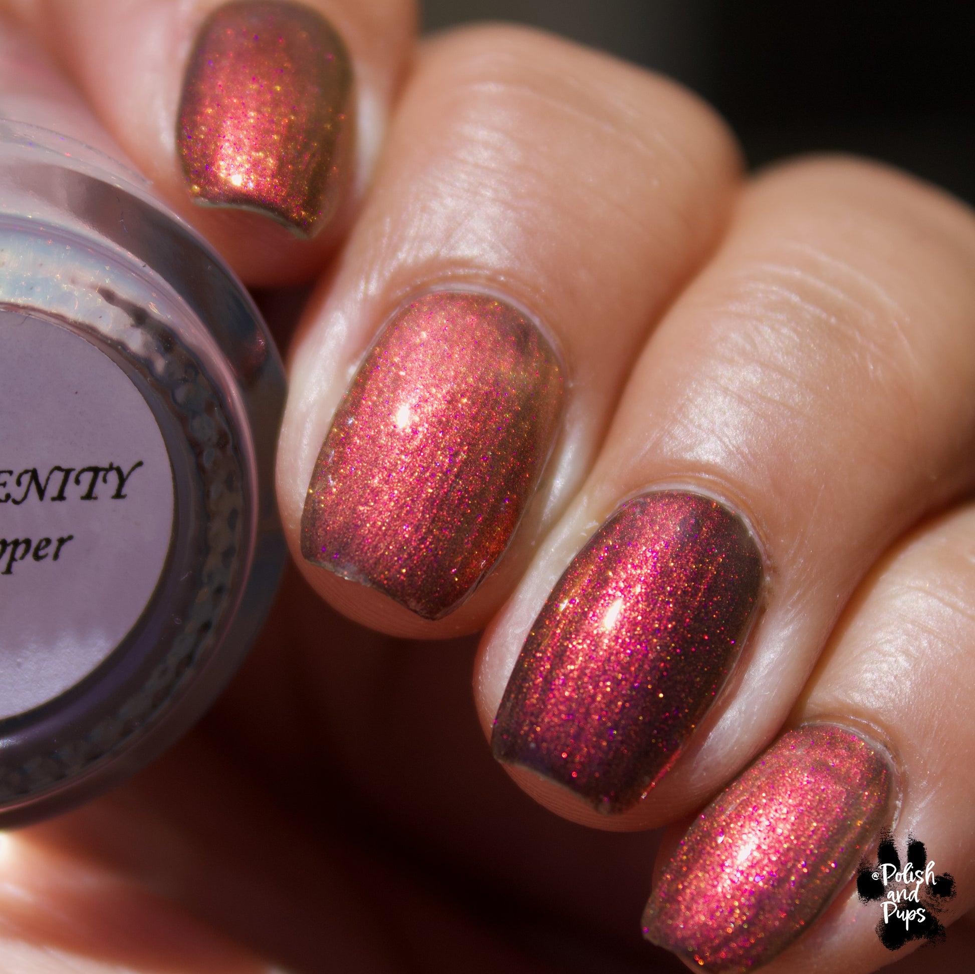 Serenity is beautiful red/orange shifting topper. Wear it on it's own for a soft milky shimmer effect or over darker shades to make the shifts pop.