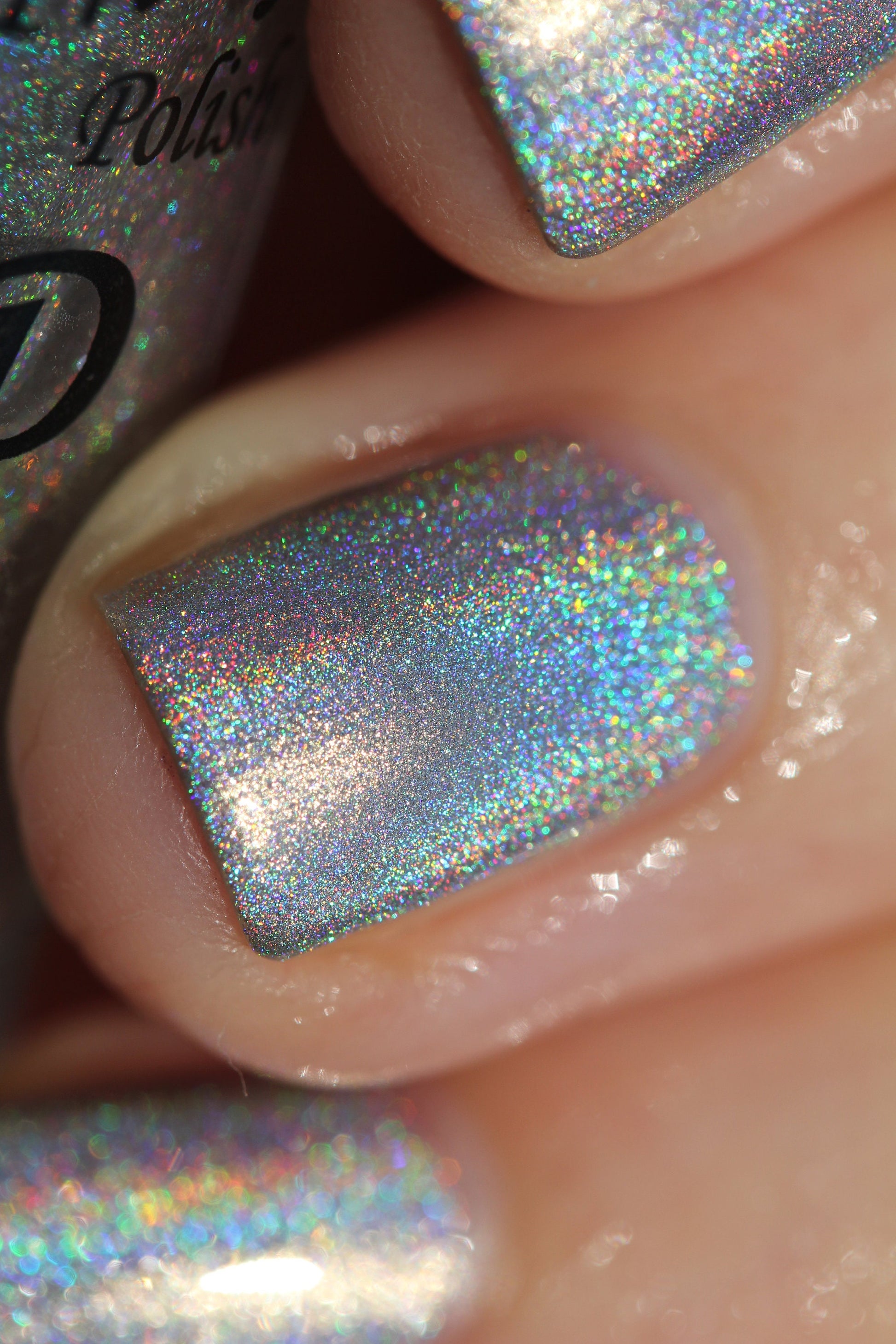 Sparkle up is a stunning silver nail polish with tons of holographic sparkle