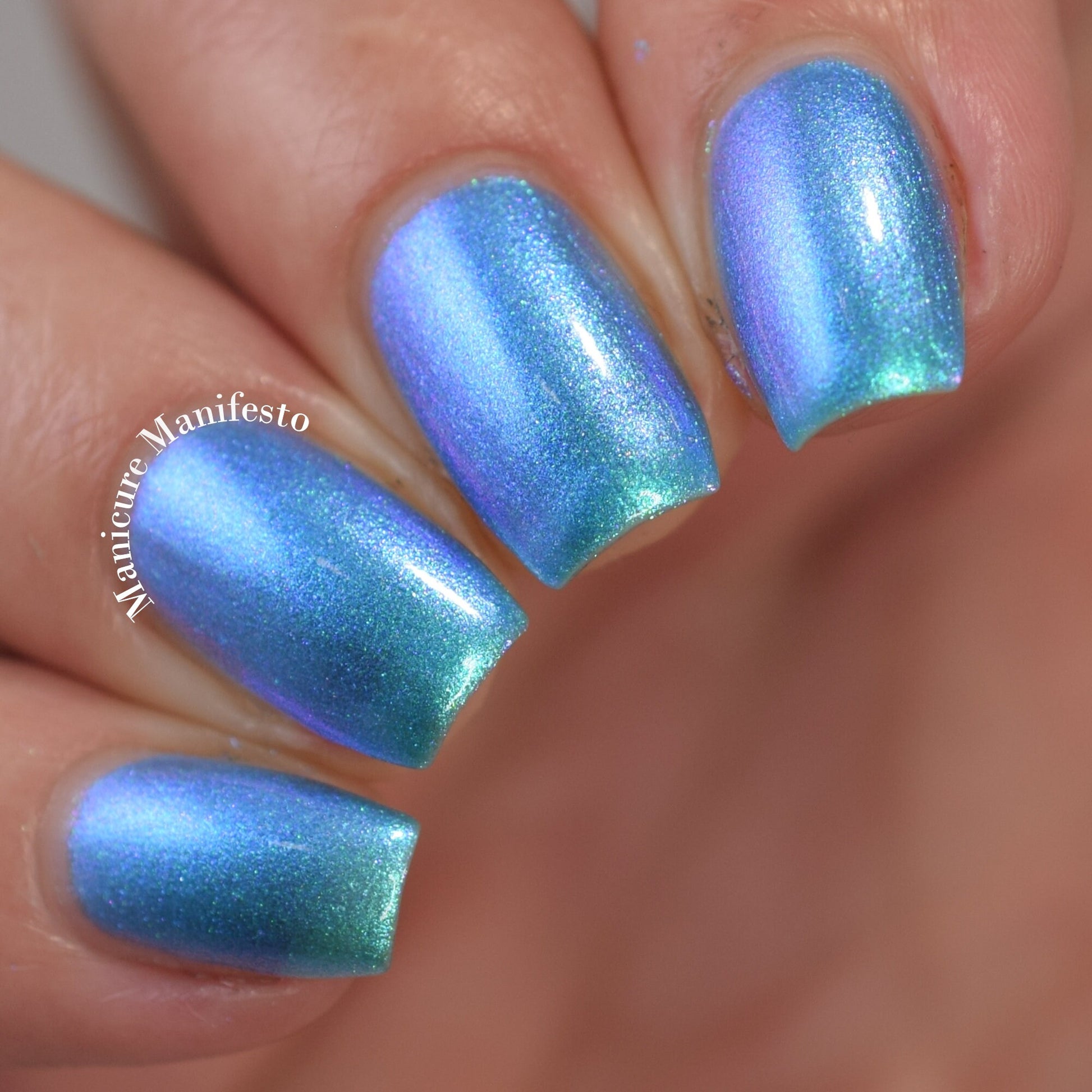 Rocking a pair of Spooky Shoes? Don't be afraid! No matter what’s going on with your footwear your nails are sure to entice with this incredibly shifty multichrome. With shifts of blue, pink, purple, turquoise (and even a little green at extreme angles) your nails will have all the attention on them.