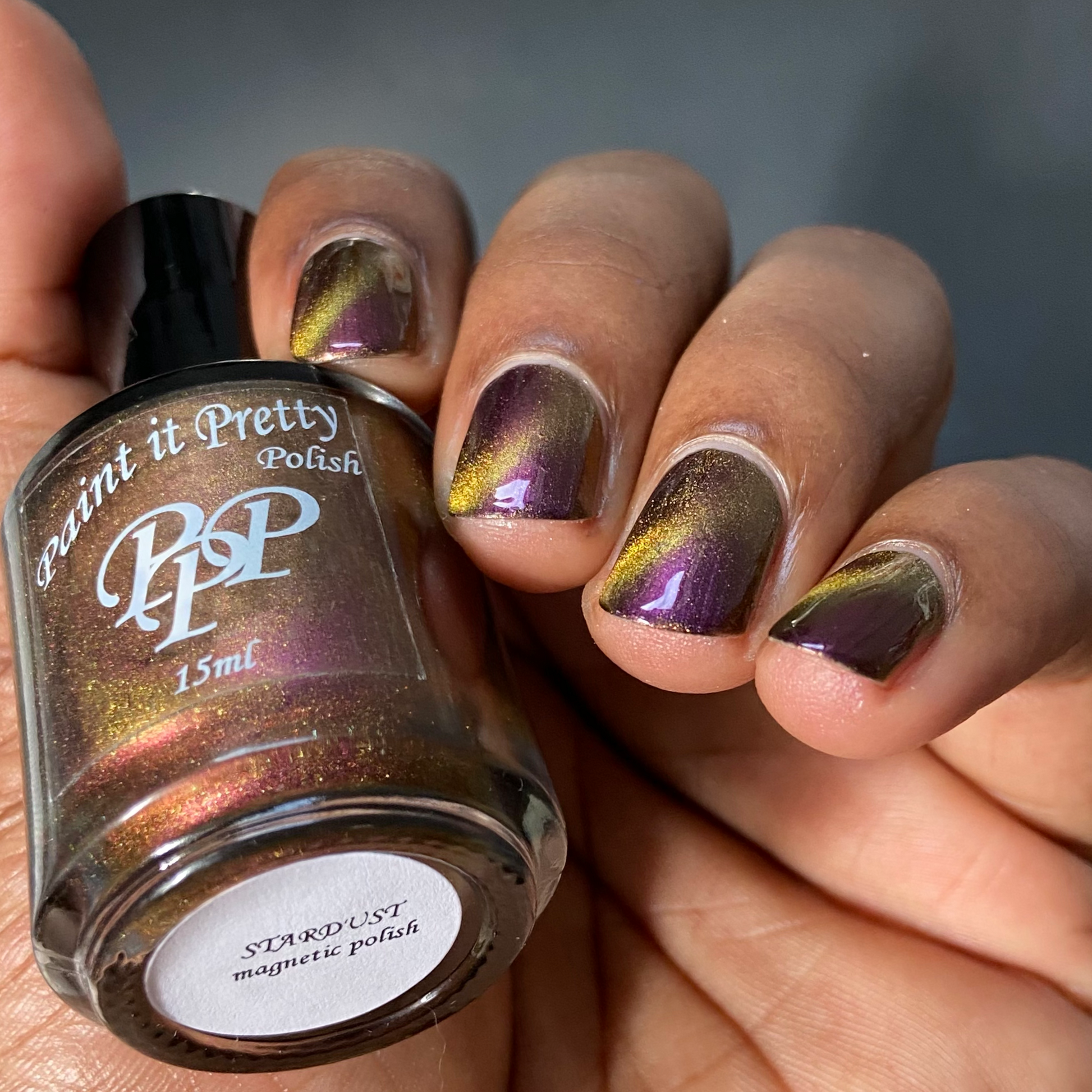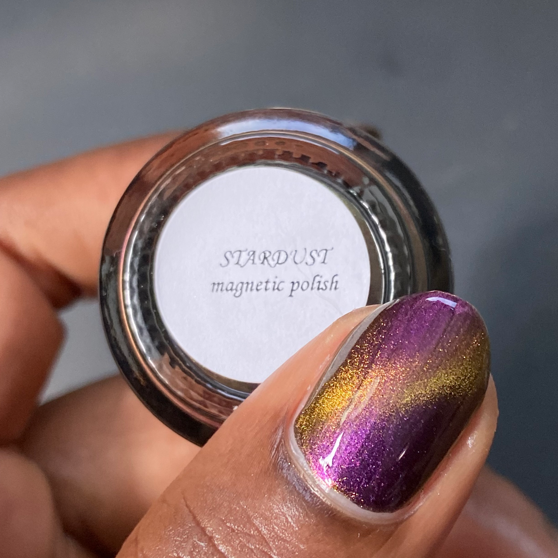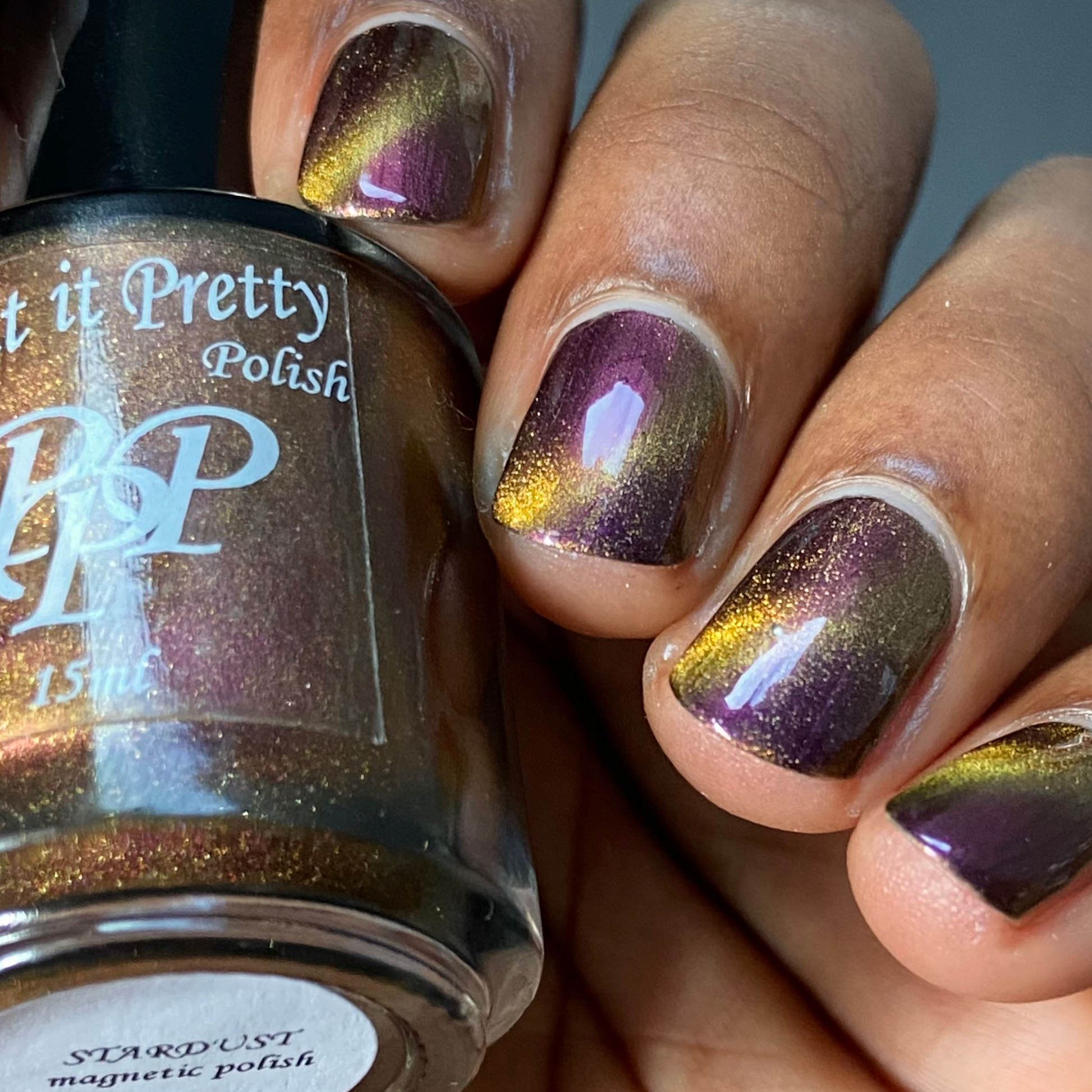 Stardust is a bronze to purple multichrome base with a bronze/gold magnetic.