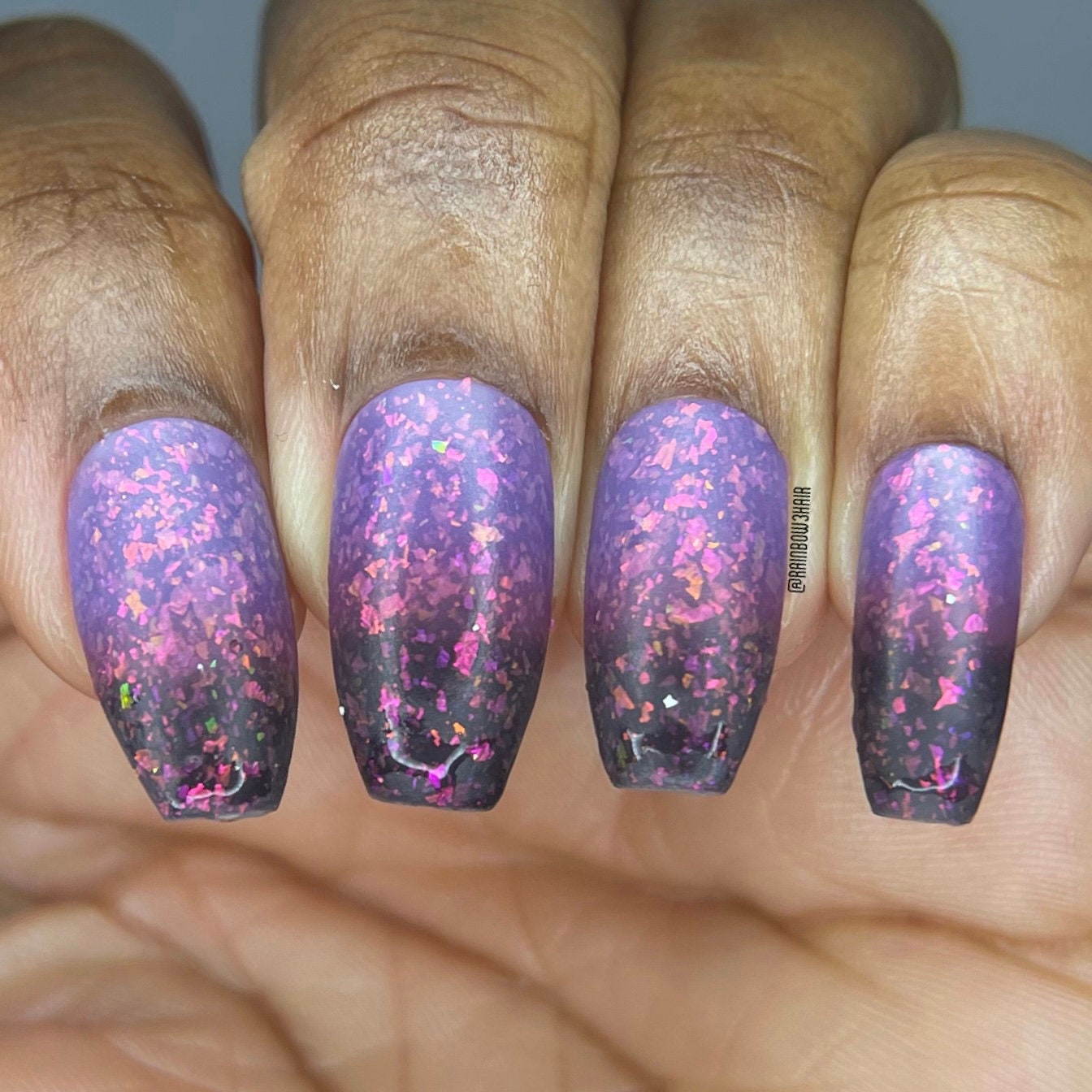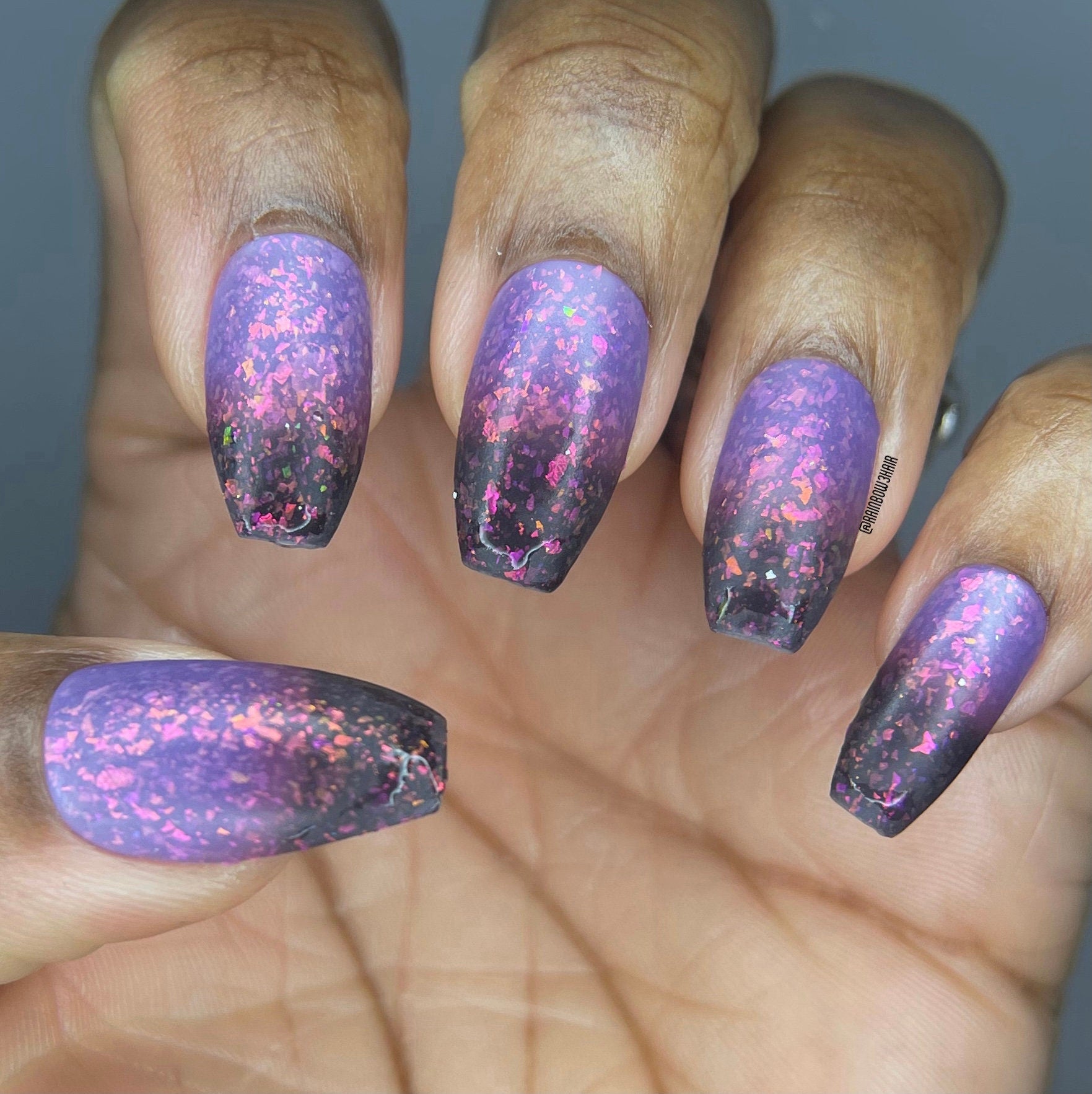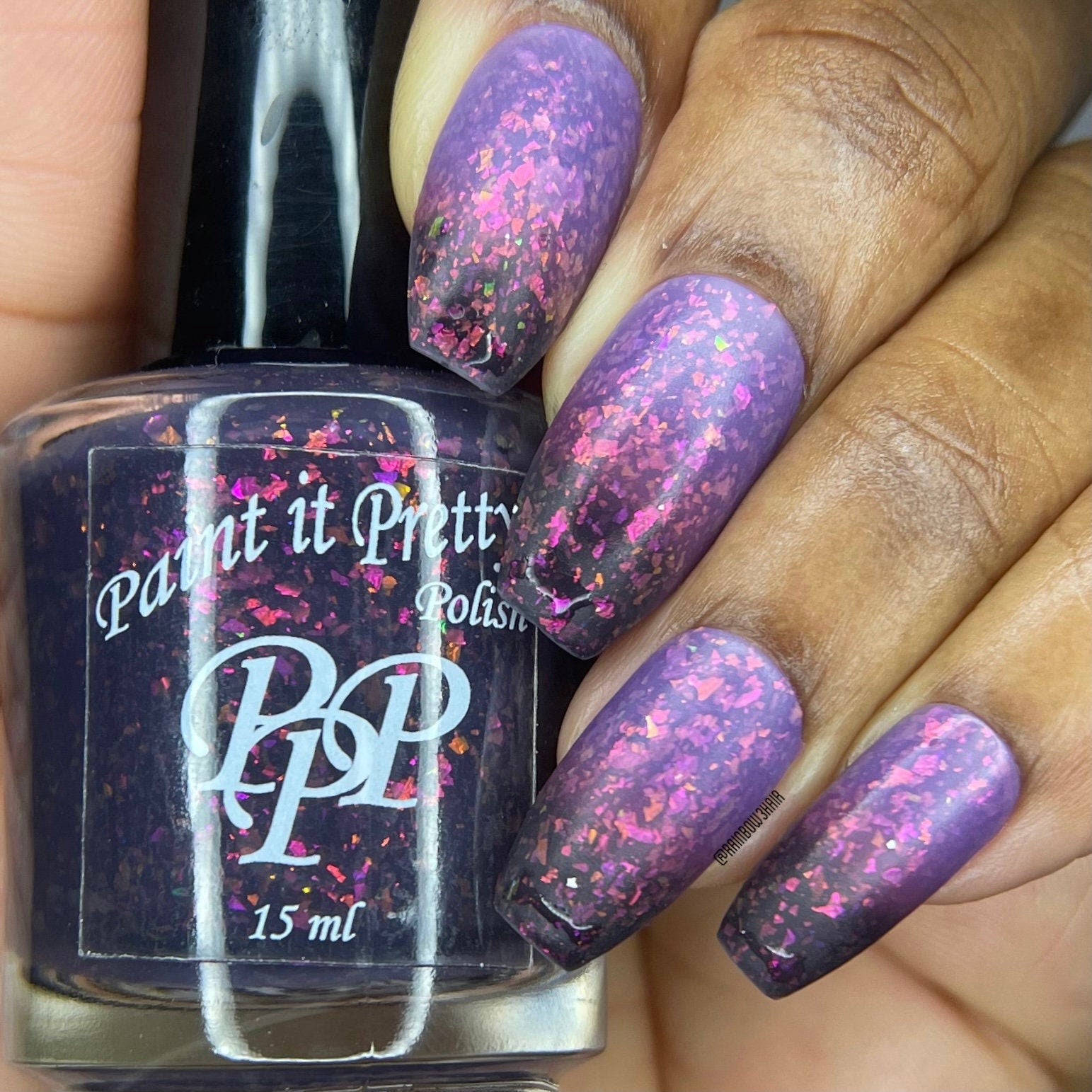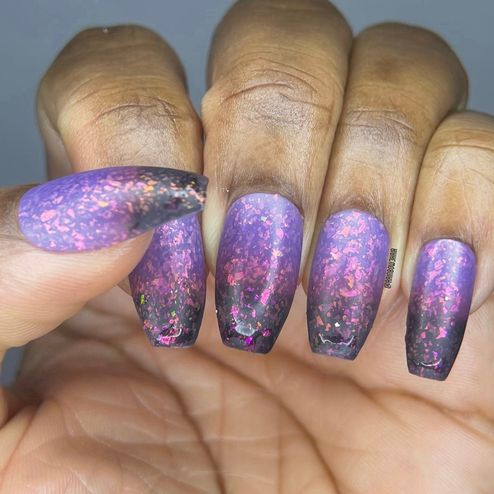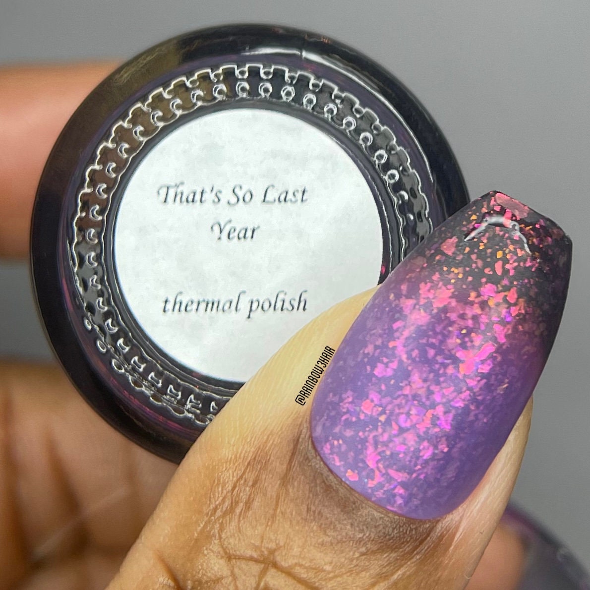 That's So Last Year is a Tri thermal nail polish. In its warm state it will be a purple to maroon shade and it turns black in cold temperatures.
