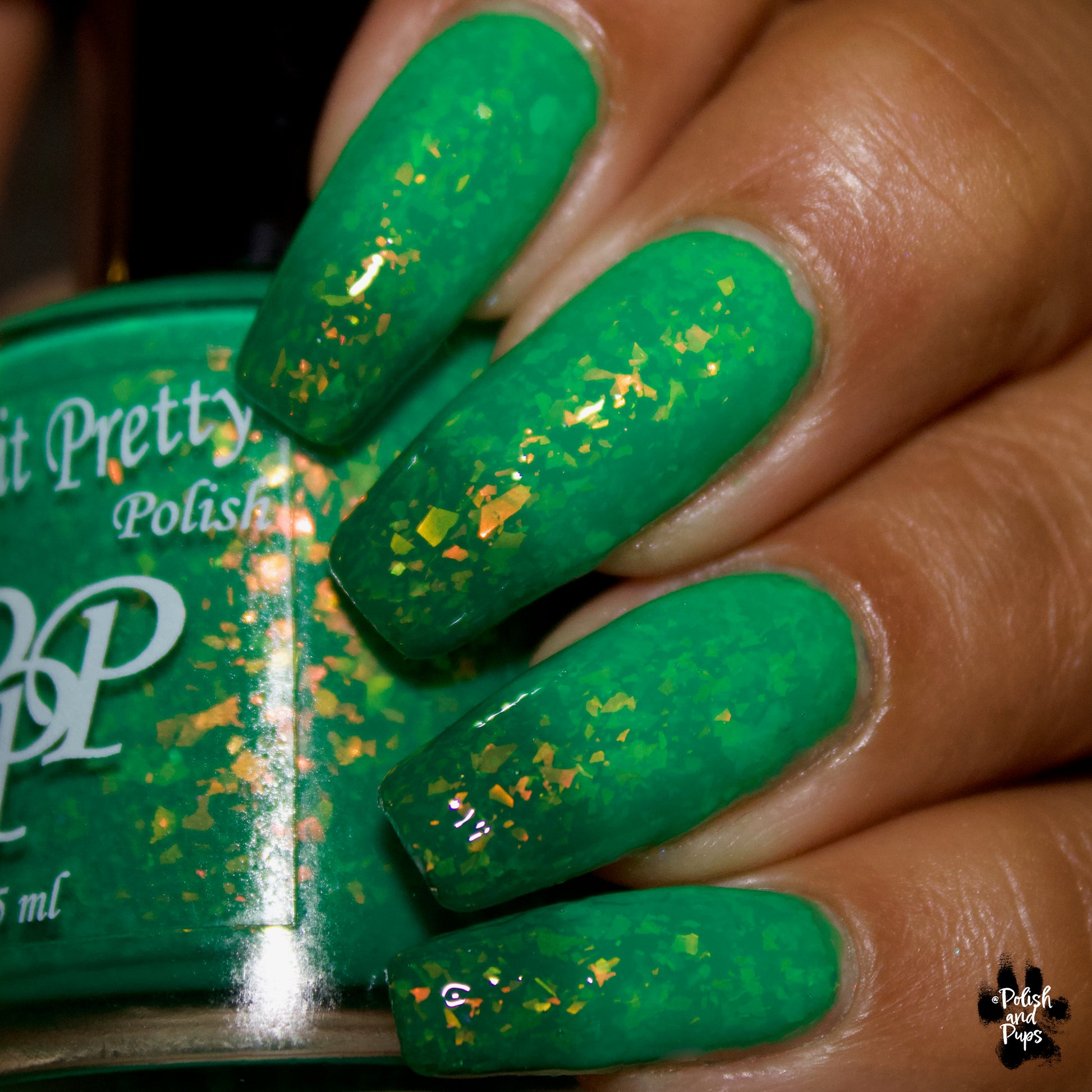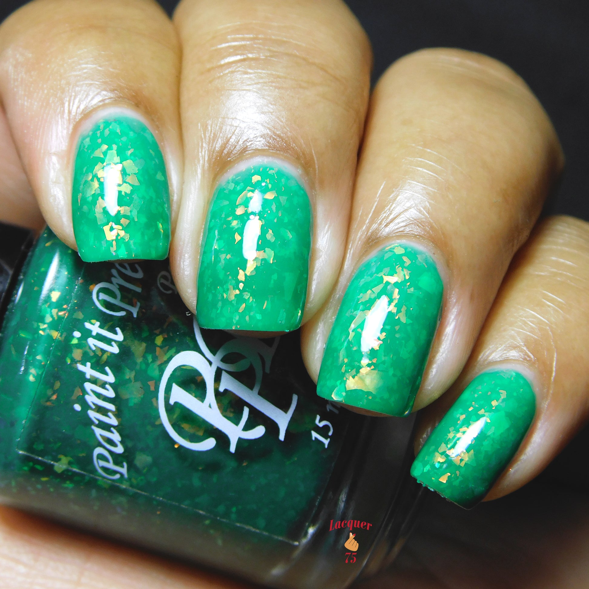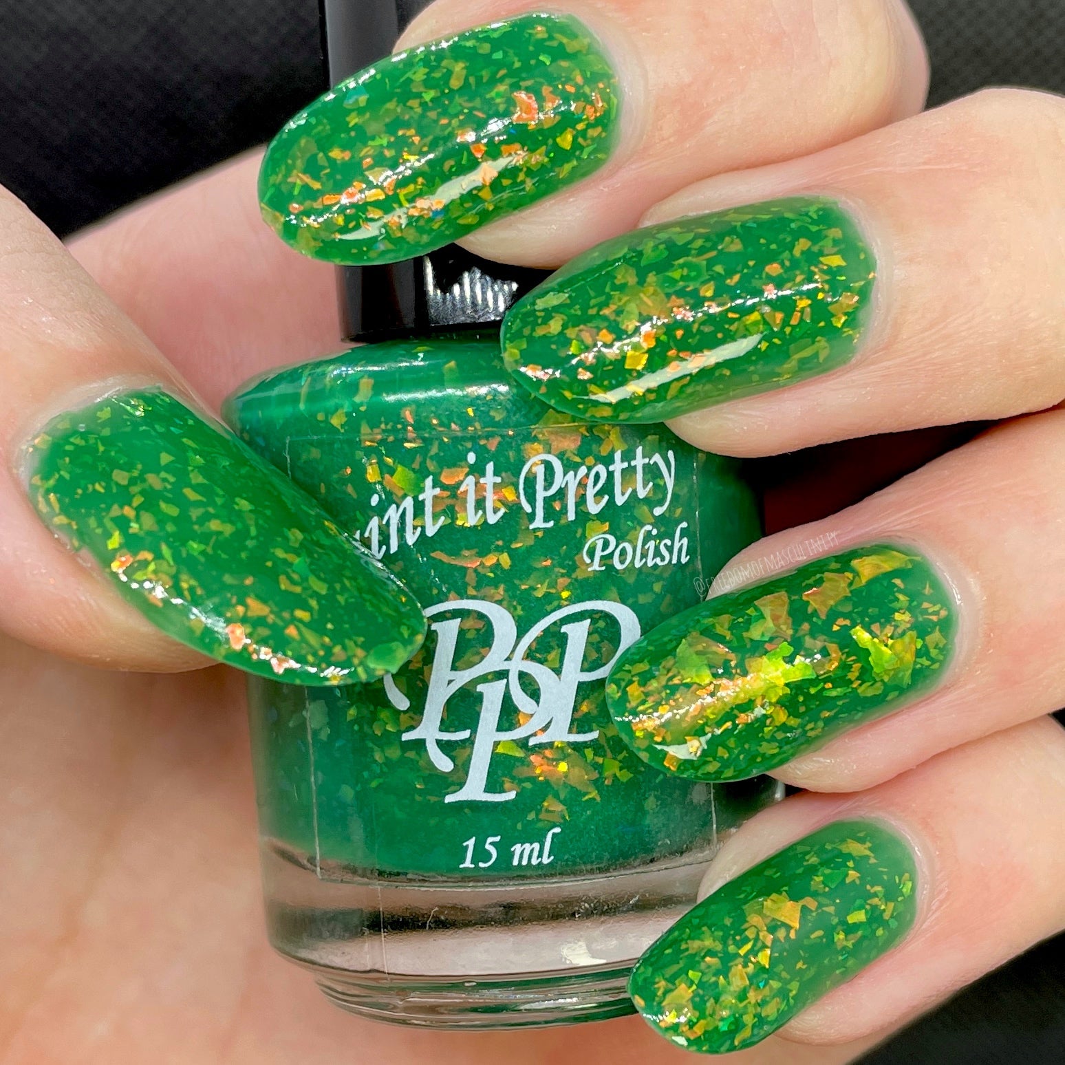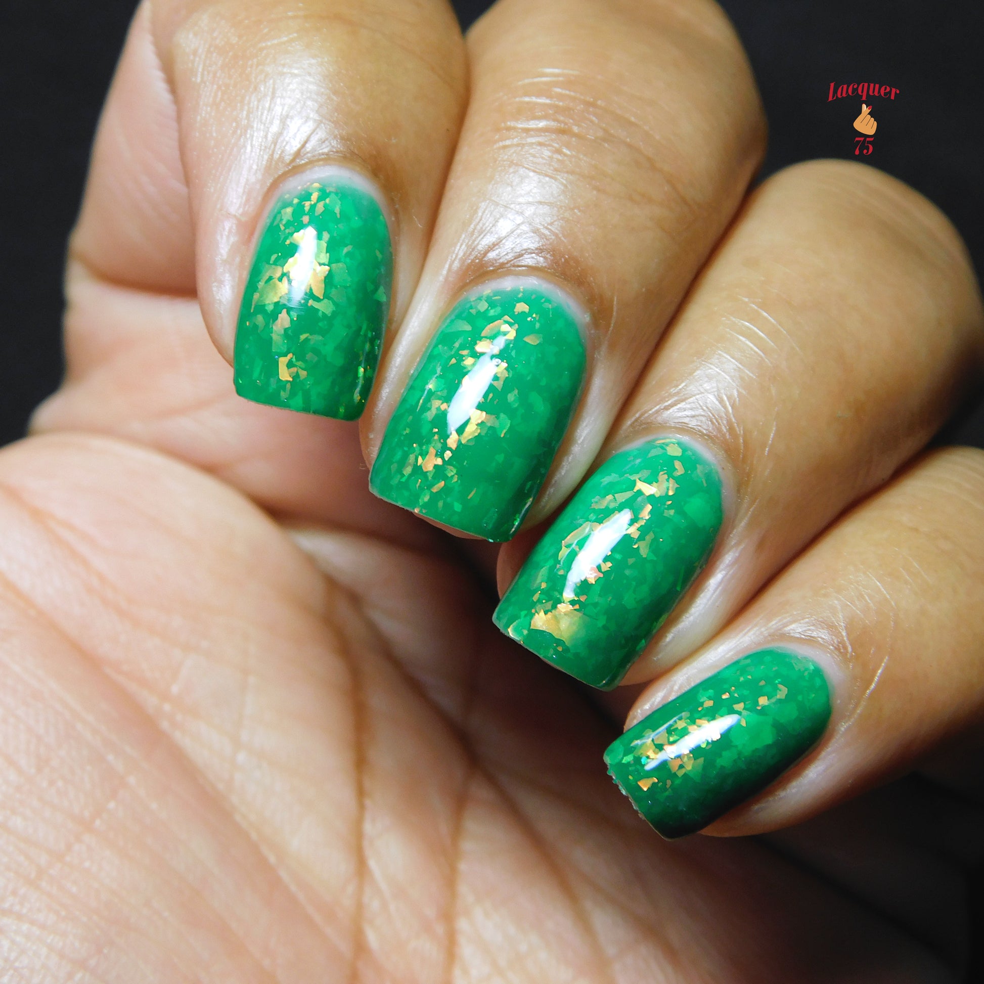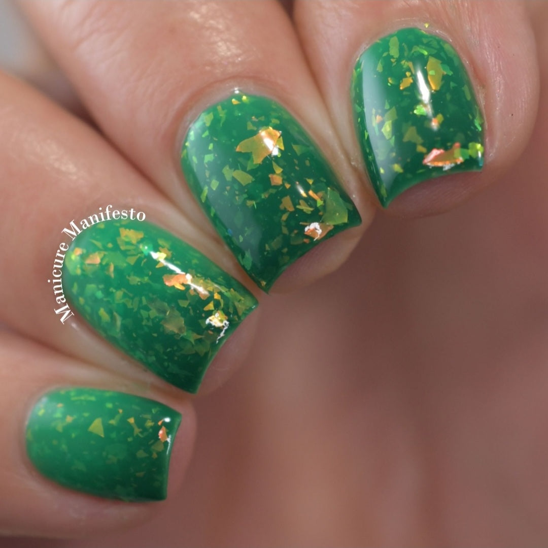 Zombies - You can’t be quite sure how it happened, but suddenly you find yourself consumed by an overwhelming desire for one thing only - POOOOOLISH! Then you see it - the perfect Halloween tri-thermal that shifts from forest green, to emerald, to finally lime green. The chameleon flakes shifting from green to gold catch your eye, and all other polishes are safe. For now.